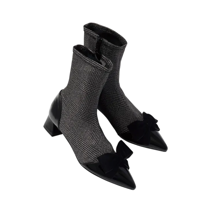 Item 【artemis by DIANA】チェック柄リボンショートブーツ