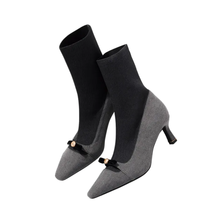 クラシカルな印象のニットドッキングブーツ。きらめくビジューで上品レディな足元に。
