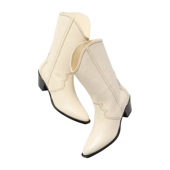 甘コーデとも相性抜群なキレイめウエスタン。ボリュームのあるヒールのシルエットが足元のすっきり見えが叶う。
