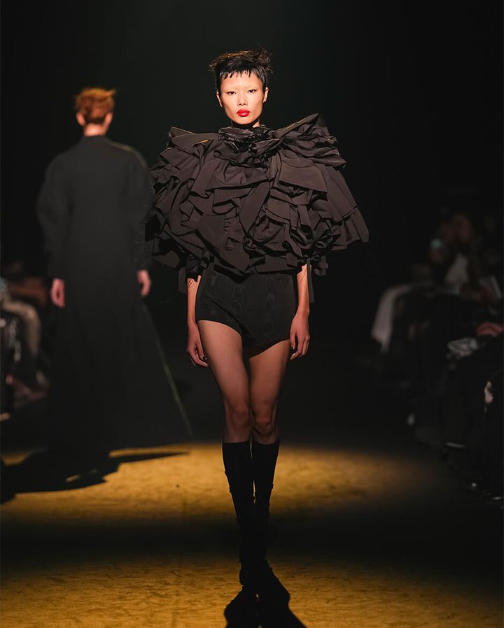 「AIが普及した今、人間ができることを改めて考えました。そして、未だに素敵で人々が着続けているクチュールのように、私たちはこの先も残っていくものを作りたいと思ったのです。メンズウェアも手がけるようになり、再びウィメンズウェアを見直しました。今回は、ウィメンズが着用することで美しいスタイルに見えるフォルムを意識して製作をしています。今後もウィメンズとメンズは分けて展開していきたいと考えています」