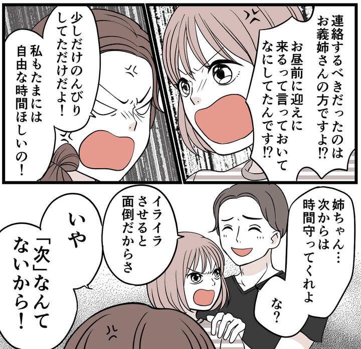 それなのに、迎えにきた義姉にそのことを指摘すると、謝罪するどころか逆ギレをされたのです。