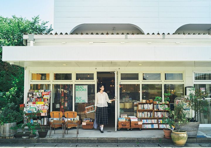 千葉・松戸の古いマンションの1階。郊外の『smokebooks みのり台店』まで足を延ばすのは、カルチャーやアートの新刊と古書、絵本もミックスしたここだけの棚が目当て。この日着たのは〈マーガレット・ハウエル〉のシルクコットンシャツ。花びらを模した襟付きのプルオンタイプで、懐かしいディテールにグッとくる。『smokebooks みのり台店』千葉県松戸市稔台1−21−1 あかぎハイツ113 047−705−0816 11:00〜18:30 木休 シャツ¥38,500、スカート¥41,800(ともにマーガレット・ハウエル 03−5785−6445)その他スタイリスト私物