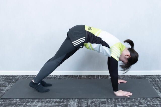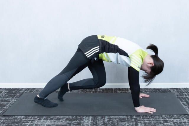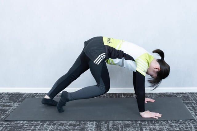(1)四つんばいの姿勢になって腰を大きく天井方向に突き上げる