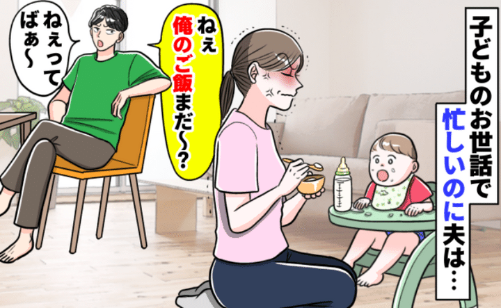 夫「俺のごはんは?」目の前で子どものお世話をしている私に食事の用意を要求…頭にきて怒鳴ると夫は
