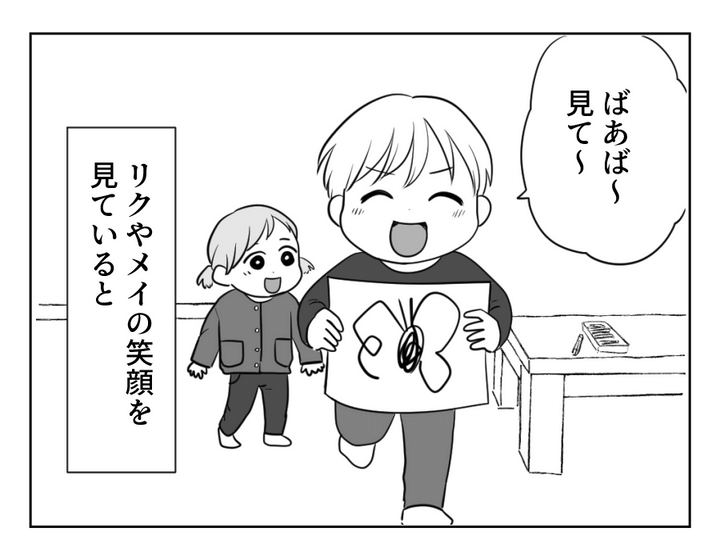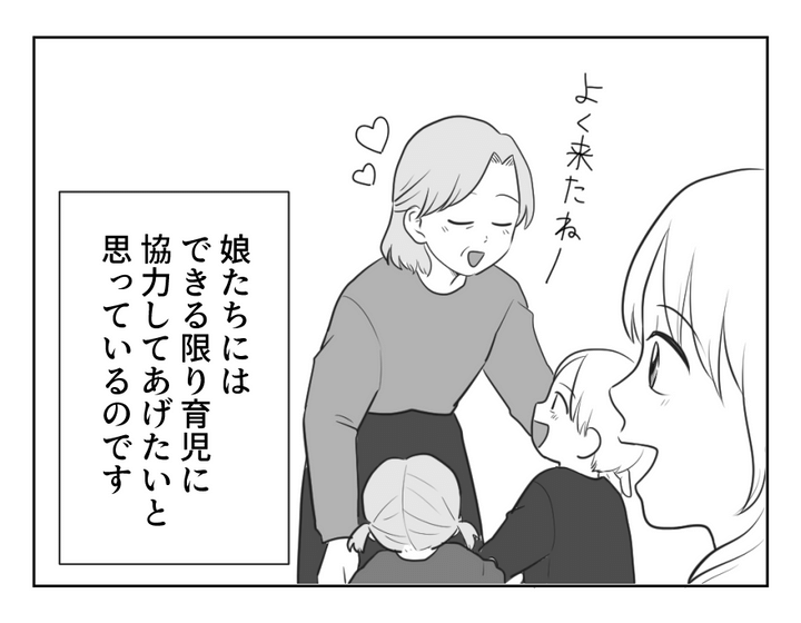 専業主婦をしているクルミさんは、ひとり時間を確保することが難しい面があります。そんなとき、実母さんが快く子どもの面倒を見てくれたら、とても助かりますよね! 実母さんも大変なのでは? と思いきや、孫との時間を楽しんでいる模様です。孫と触れ合いながら、かつての子どもたちの姿を懐かしく思う時間が愛しかったりするのかもしれません。素敵ですね!