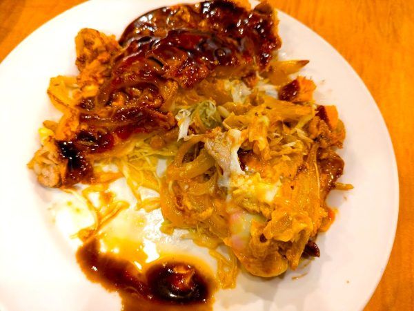 生姜のタレがたっぷりとかかっていてご飯がすすみますね~。豚の生姜焼きライブを解説すると、玉ねぎは玉ねぎだけでコテで炒めます。これが甘くておいしいです。豚肉も同様で最後に一緒に炒めてフィニッシュです。おいしいです。