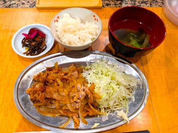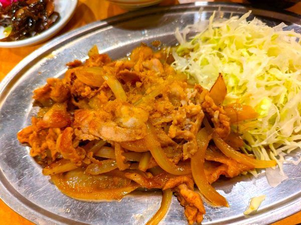 豚のしょうが焼き定食(850円)。コテで炒めた玉ねぎが甘~い