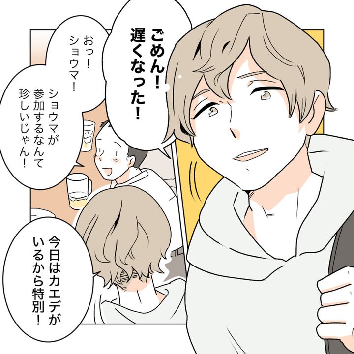 しばらくすると、「ごめん!遅くなった!」と言ってショウマが到着しました。「おっショウマ!ショウマが参加するなんて珍しいじゃん!」と言われると、「今日はカエデがいるから特別!」と言ってショウマは明るく言いました。相変わらずのショウマは、陽気で誰とでも気軽に話すタイプ。