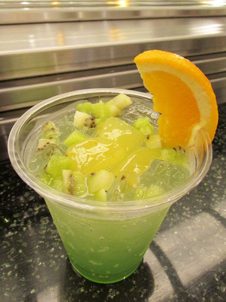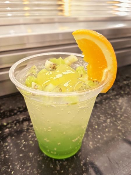 キウイシロップ、パッションフルーツシロップ、ソーダに、甘夏ゼリーをプラス。たっぷりのったキウイの果肉でさらにさっぱりとした飲み心地に。オレンジの飾りもアクセントになっていて、これぞ夏!なドリンクです。