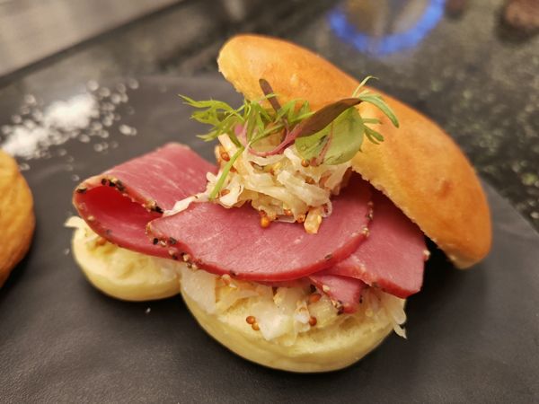 キャベツの酸味とパストラミの塩味の絶妙なバランスが食欲をそそります。