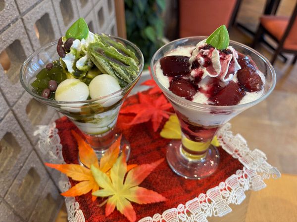 続いて「ぶどうヨーグルトパフェ」と「抹茶白玉パフェ」。