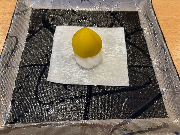 さらにパフェ以外の和スイーツは3種類。こちらは、栗の求肥大福。料亭で出てきそうな上品なビジュアルですね。