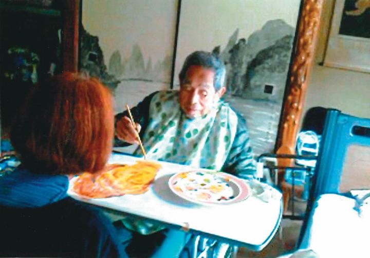 夫は私が通っていた絵画教室の先生でした。23歳のときに結婚、3人の子どもに恵まれました。その子どもたちが、介護の支えとなってくれました。私は「絵描きの先生」に戻ってほしくて、ベッドのそばに絵の具を並べ、花を飾り続けたりと、必死でした。最初はプラスチックスプーンで絵の具をつついていたのですが、やがて絵筆を手にするようになってくれました。倉庫に眠っていた昔の自分の絵に向かって、「このオレンジが汚い。明るくするといいよ」などアドバイス(?!)をすることも。「先生、少し戻ってきたわ。絵描きだってわかってきたみたい」とうれしくなったものです。
