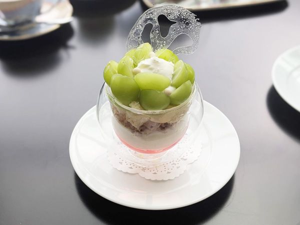 シャインマスカットを使ったスイーツも注目です。この日は山梨県産のシャインマスカットを使用。時季に合わせ、その時々のおいしいシャインマスカットを提供してくれます。