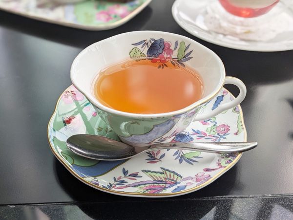 缶の茶葉だと香りがとんでしまうため、今回はティーバッグで提供してくれます。ティーポットに入ったお湯に開けたてのティーバッグを浸して待つこと数分。香りと味わいの両方に癒やされます。紅茶だけでなく、白茶、緑茶、ハーブティー、フルーツティーなど13種類から選べ、さらにアイスティーやコーヒーも楽しめます。