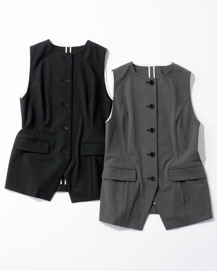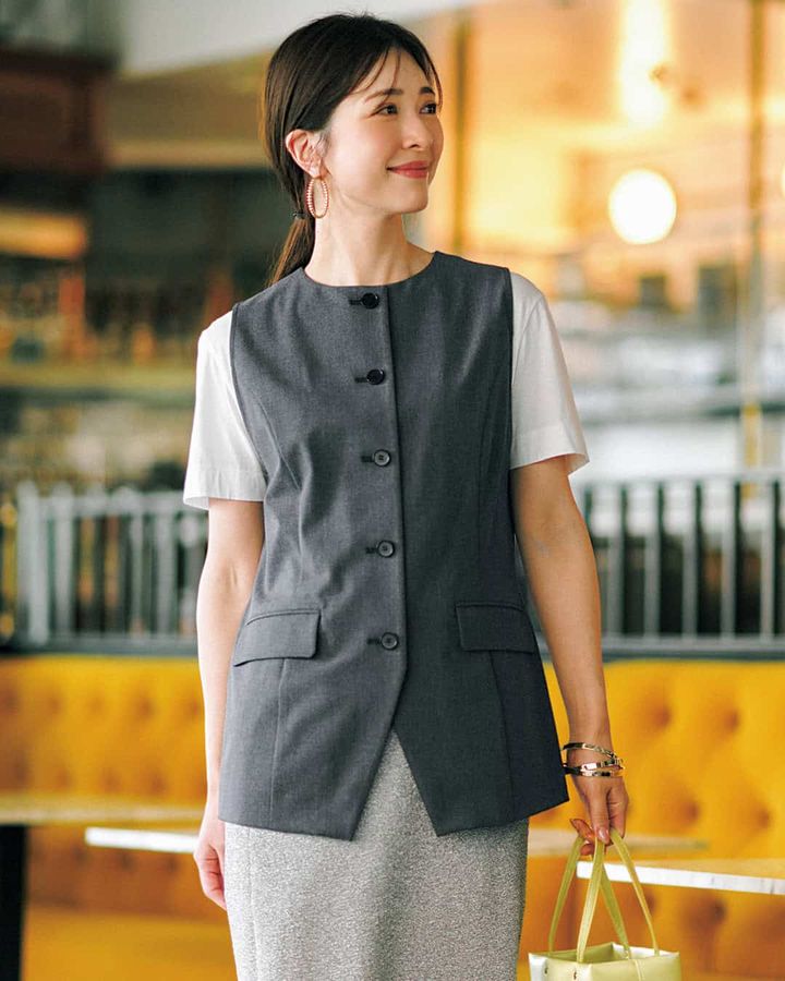 ①きちん見えするからシーンレスに使える「マニッシュジレ」