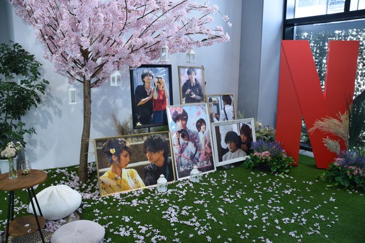 展示は1~3階に分かれており、2階エレベーターを上った目の前には現在話題沸騰中の「グラスハート」のバンドセットが。この階には「First Love 初恋」「ボーイフレンド」「あいの里」「桜のような僕の恋人」のフォトスポットも設置されており、それぞれ“季節”を感じられるセットに心がゆさぶられる。(※2階に入るには事前予約が必要)
