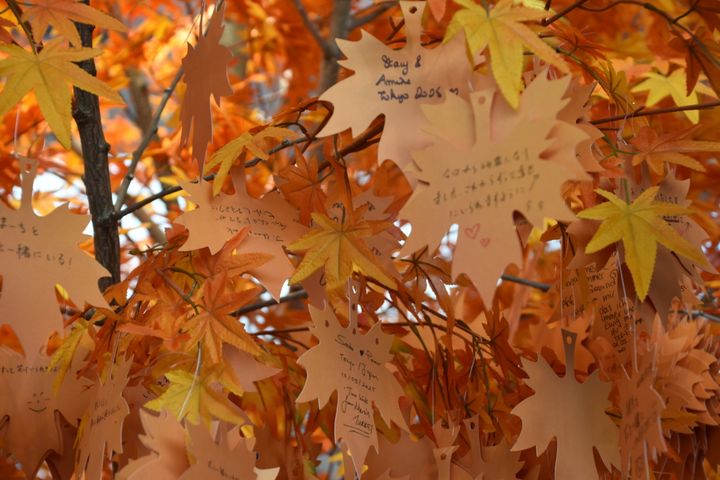 物語に思いを馳せるのも良いのだが、カエデの葉に“恋の願い”を書いて木に結べるコーナーも。作品に合わせて、自身の「恋の物語」をそこに加えてみてはいかがだろうか。