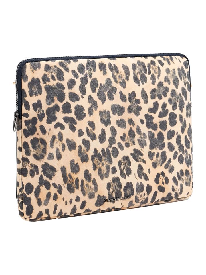 スペイン発の人気ブランド、ビンバイローラ(BIMBA Y LOLA)のレオパード柄のPCケースは、バッグの中に入っていると気分の上がるルックス。ポケットにアクセサリーの収納ができるところも頼もしい。