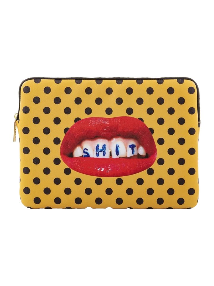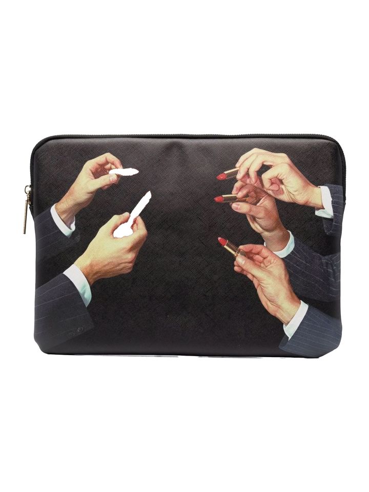 こちらのPCケースは、イタリアの生活雑貨ブランドであるセレッティ(SELETTI)と雑誌『TOILETPAPER』がコラボレーションしたグラフィックをプリント。インパクトのあるデザインでおしゃれなファッションアイテムとして活用できる。