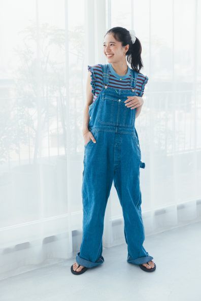 「サロペットはもはや夏の定番! ちょっと長いかな?くらいの丈を折って履くのが美憧流です」