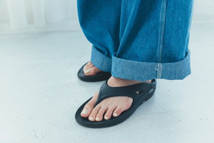 足元は安定のOOFOS。二代目に突入するほど愛用しているとのこと。