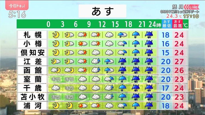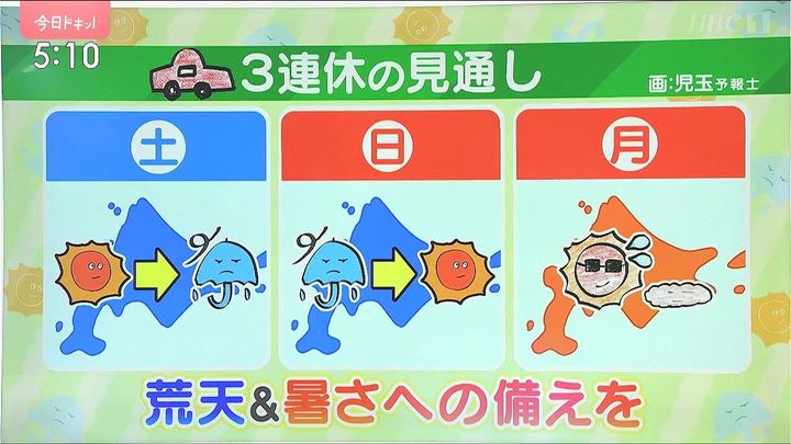 HBCテレビ「今日ドキッ!」の番組内でも独特(?)なイラストを使って天気をお伝えしています。