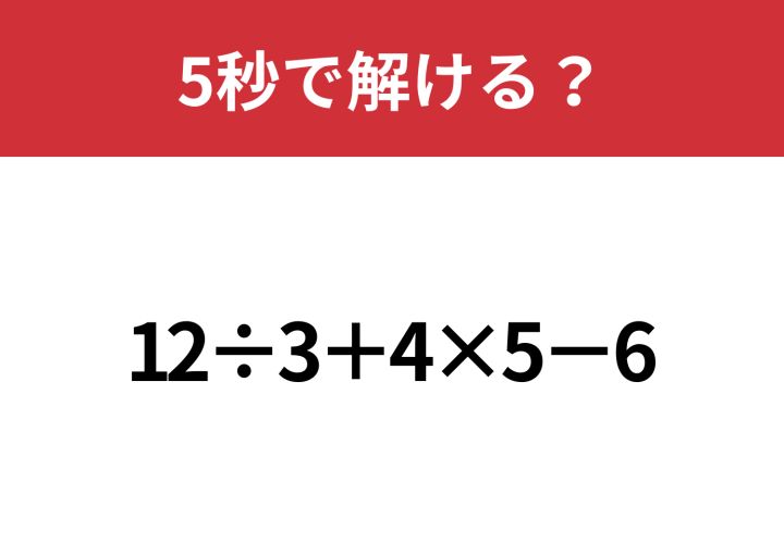 あなたの実力を試してみて!「12÷3+4×5−6」5秒で解ける?