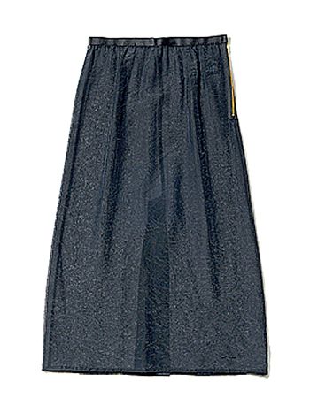黒シアースカート 13,200円/ノーブル(ノーブル 有楽町マルイ店) 「軽やかなオーガンジー素材で、パンツの上に重ねたり、スカートの下からのぞかせて使っています。定番ボトムにも簡単に甘いムードを上乗せできる」(樋口さん)