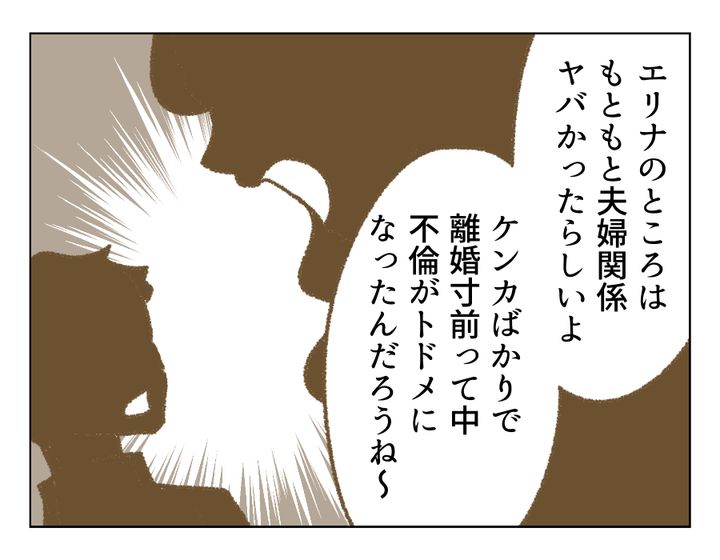 ミキさん(36歳)は、都内在住で年長の女の子を育てるワーママ。仕事や家事や子育てに追われる毎日を退屈に感じていました。そんな中、大学時代の友人・エリナさんから突然再会のお誘いが。学生時代に同じゼミだったシンジさんとケントさんを交え、子連れ飲み会となりました。しかし都合のいい子守り要員として呼ばれたことに気づいたミキさんは、ブチ切れて絶縁。その数か月後、なんとエリナさんがシンジさんとケントさんと二股不倫、それがバレて離婚したと友人から聞いたのです。