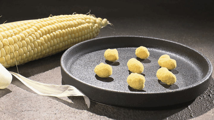また、新たにミシュラン一つ星を獲得したこともある懐石料理の名店からの「コーン」を依頼された中島さん。ほのかな甘みのスイートコーンパウダーを、カシューナッツと組み合わせます。さらに、肉もチーズも使わない、カルボナーラ味の豆菓子に挑戦することにしました。