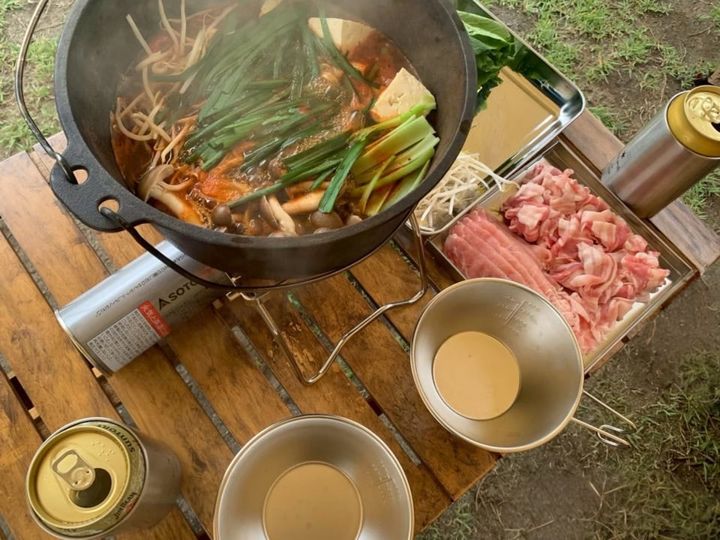 「“キャンプ飯”を追求中。先日はついに、念願だったしゃぶしゃぶをしました! 大自然の中で食べるご飯はいつも格別です」