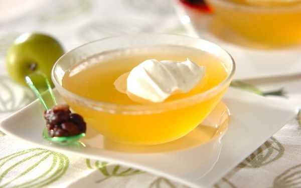 「100%リンゴジュース」と「ゼラチン」で作るお手軽ゼリーです。鍋で材料を混ぜたら、器に移して冷やすだけなので、子どもと一緒に作れます。ホイップクリームなどをトッピングして、パフェ風にするのも◎。