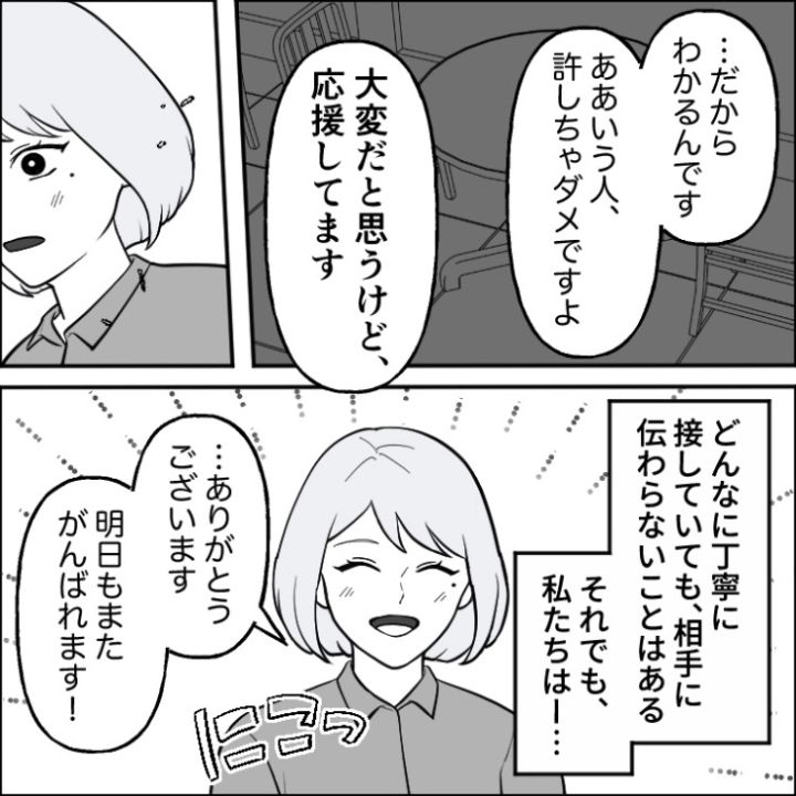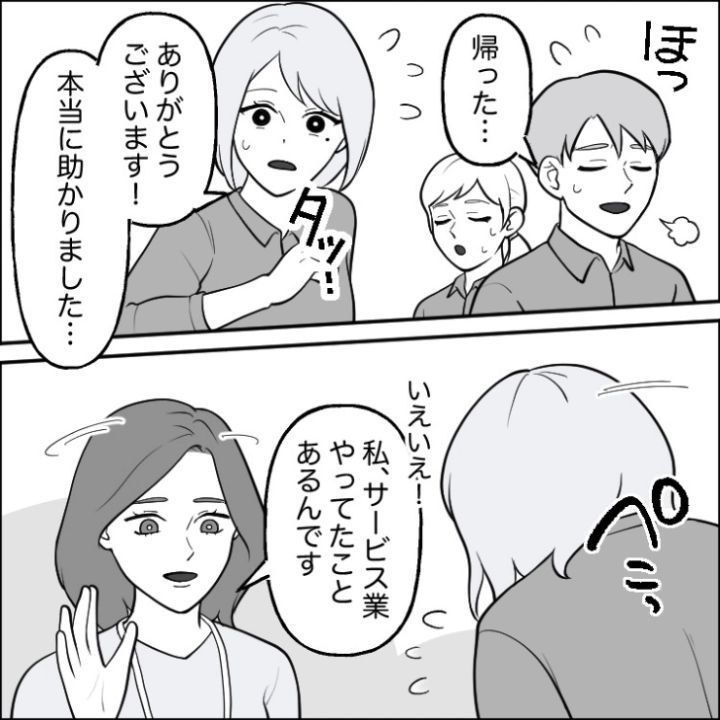 たまたま「小声おじさん」の隣に座っていた女性の正論パンチで大恥をかくことになった迷惑客。このような迷惑客に負けずに頑張りたいと思った主人公でした。