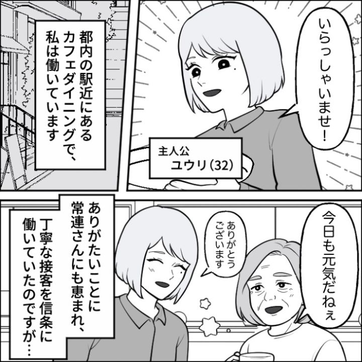 主人公のユウリは都内にあるカフェダイニングで働くアラサー女子。常連さんとも仲良く、毎日楽しく仕事をしていたのですが・・・。