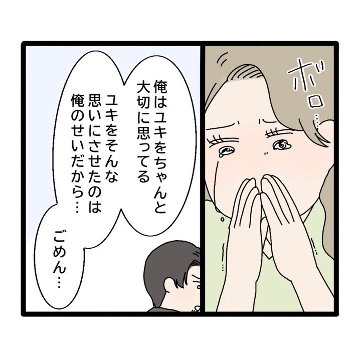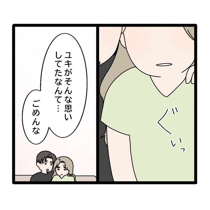 ユキさんの肩をぐっと抱き寄せると、「ユキがそんな思いしてたなんて・・ごめんな」と言いました。