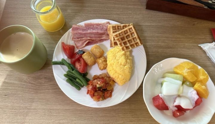 そうしてぐっすり休んで迎えた翌朝。お楽しみのモーニングブッフェでは、母娘そろってあれこれ選びながら、満腹になるまでたっぷり朝食を堪能しちゃいました!前日の疲れをしっかり取って、おいしい朝ごはんを食べたから、この日も元気にアクティブに動き回って、大自然を満喫できました。