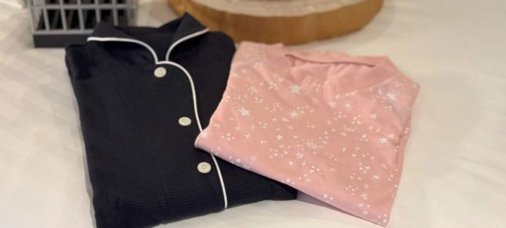 ただ、娘は身長が160cmあるため私とおそろいの大人用パジャマを着用。希少な超長綿を使った天綿素材ですから、そりゃもう当然「軽くて気持ちいいね~」とご満悦でした。