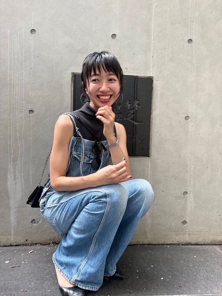 少しずつ洋服も秋モードにチェンジしていきたい今の季節。スレーブレスニットを使うのが今秋の大本命! タートルネックデザインのニットタンクを投入することで、デニムのオールインワンコーデもシックにまとまります。小物は黒をチョイスして、スタリッシュに仕上げているのも参考になります。