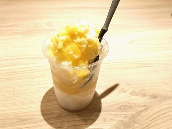 「レモンレアチーズ」のテイクアウト用がこちらです。削った氷にレモンのはちみつ漬けが入っていて、暑さを忘れるさっぱり感で、レアチーズやヨーグルトのコクも感じられます。いやあこれは立派な「洋菓子」ですね💛