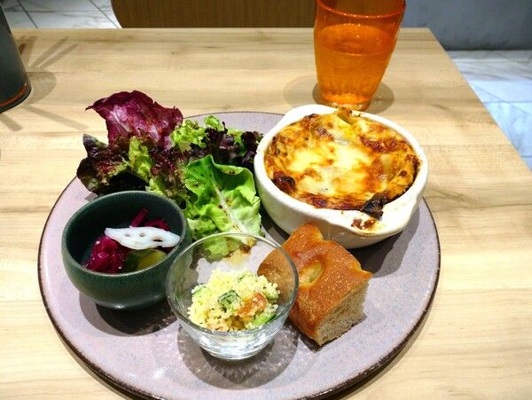 そして、ランチでも使えるのが、このお店のいい所です。実際私も、“ランチ難民”となった週末に、ここに駆け込んで救われたことがあります~。 その時に頼んだのがこちら。コクのあるミートソースの「ラザニア」で、付け合わせのお野菜がシャキシャキ☆