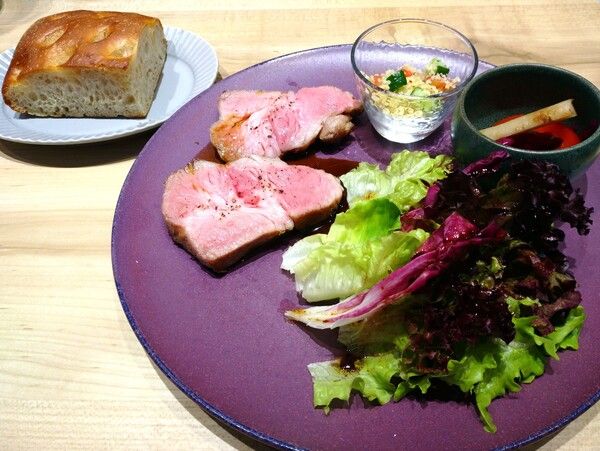 メインにのお肉料理はいくつかありますが、「アーモンドポークのロースト」がこちらです。調味料などもできるだけ手作りしているそうで、不思議と子どもも喜んで食べます♪