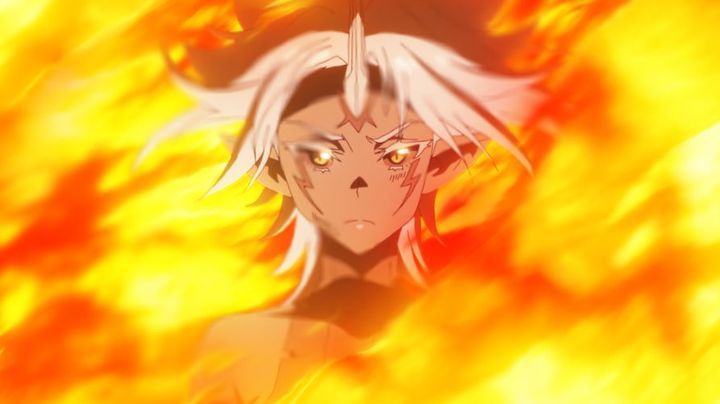 と重ねたシルドニア(CV:髙橋ミナミ)の言葉どおり、炎の中からユーリガの姿が!
