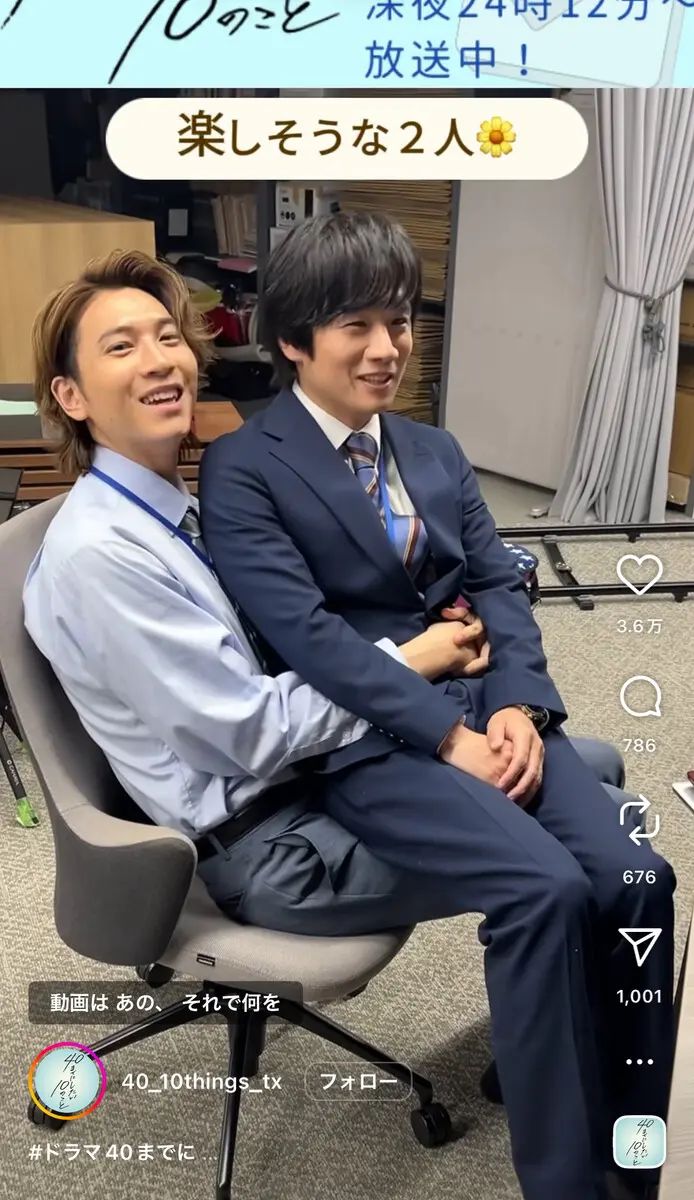 俳優の風間俊介さんと庄司浩平さんが出演するドラマ『40までにしたい10のこと』の公式Instagramが9月11日に更新され、二人の仲睦まじいオフショット動画が大きな反響を呼んでいます。