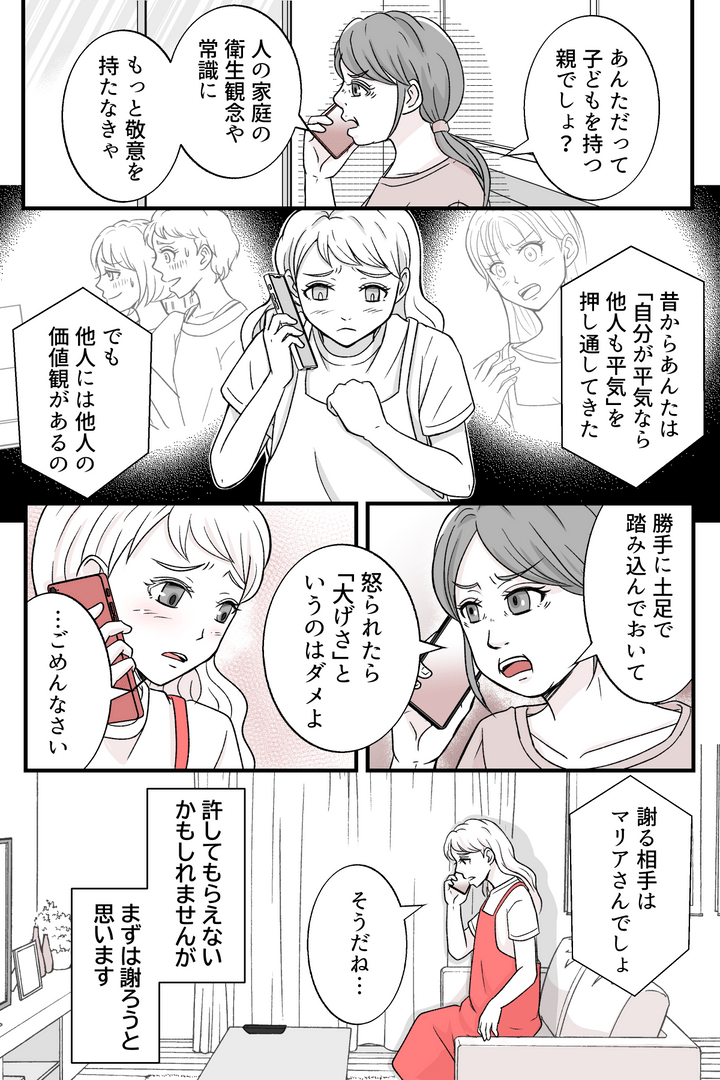 ママ友に距離を置かれ、母に諭され、ようやく自分の過ちに気が付くことができたのです。