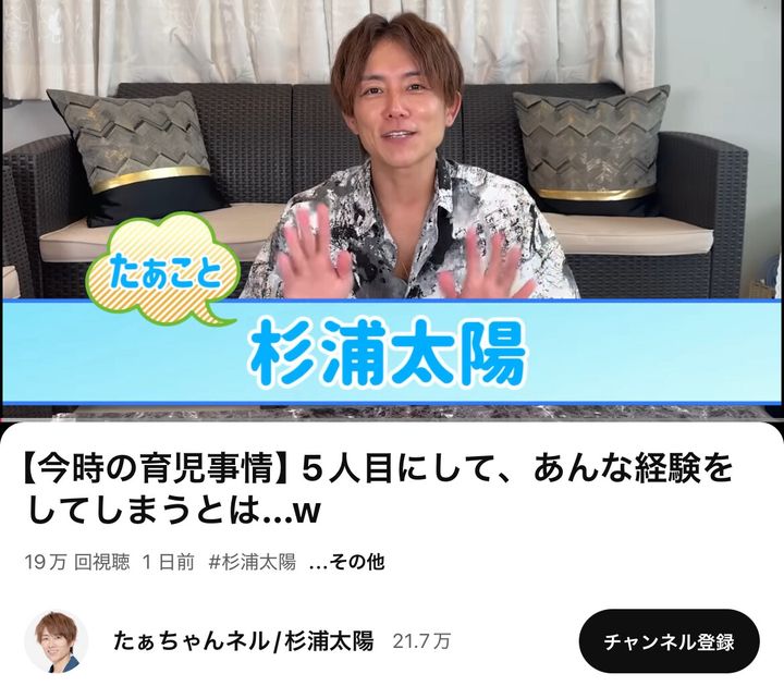 YouTubeチャンネル「たぁちゃんネル/杉浦太陽(@taachannel_official)」より引用