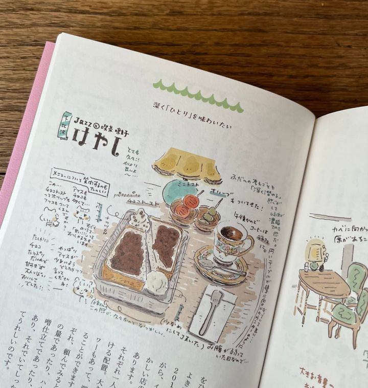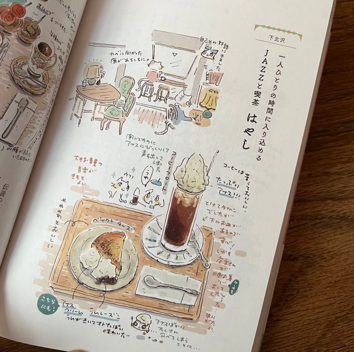 見て!こんなにギュッと描き込まれたイラストで喫茶店を紹介してます。細かいところまで読むのが好きな私にはたまりません!