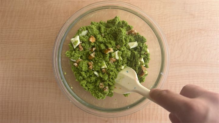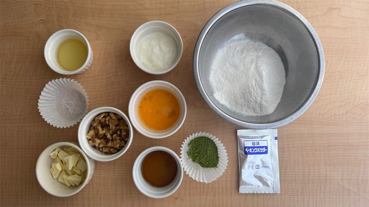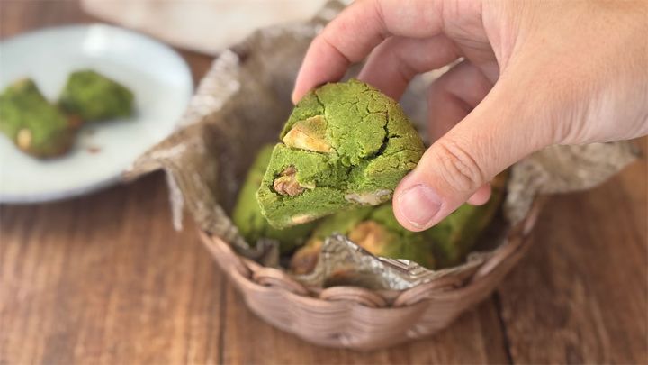 こんにちは!元パティシエで現在は2児の母をしている室崎さゆりです。今回は、バター不使用でもサクサク食感に仕上がる米粉スコーンのレシピです。生地には抹茶を使い、くるみと砕いたホワイトチョコを混ぜ込んで焼き上げます。ほろ苦い抹茶の風味に、ホワイトチョコのミルキーな甘さが相性抜群!とっても簡単に作れるのに見た目も可愛いので、おうちカフェにもピッタリですよ。