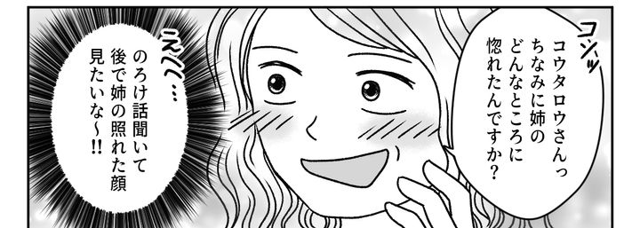 私がケイジを連れて行ったのは、彼が社交的だからです。コウタロウさんも社交的で、話は結構盛り上がったし、打ち解けたと思います。そこで、姉がお手洗いに立ったタイミングで、コウタロウさんに姉の好きなところを聞いてみることにしました。のろけ話でも聞きたいな、後で姉に教えてあげて照れる姉の顔が見たいな、そう思っていたのですが……。