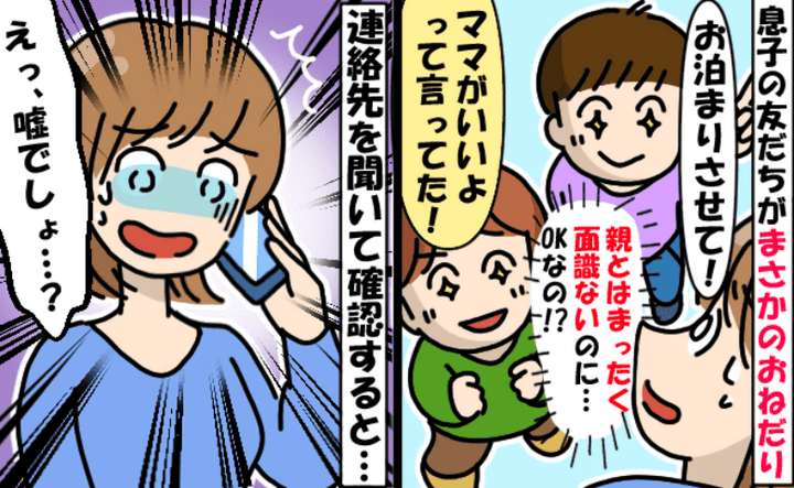 息子の友だち「ママがお泊まりしていいって!」私、ママと面識ないのに…連絡先を聞いて確認すると!?